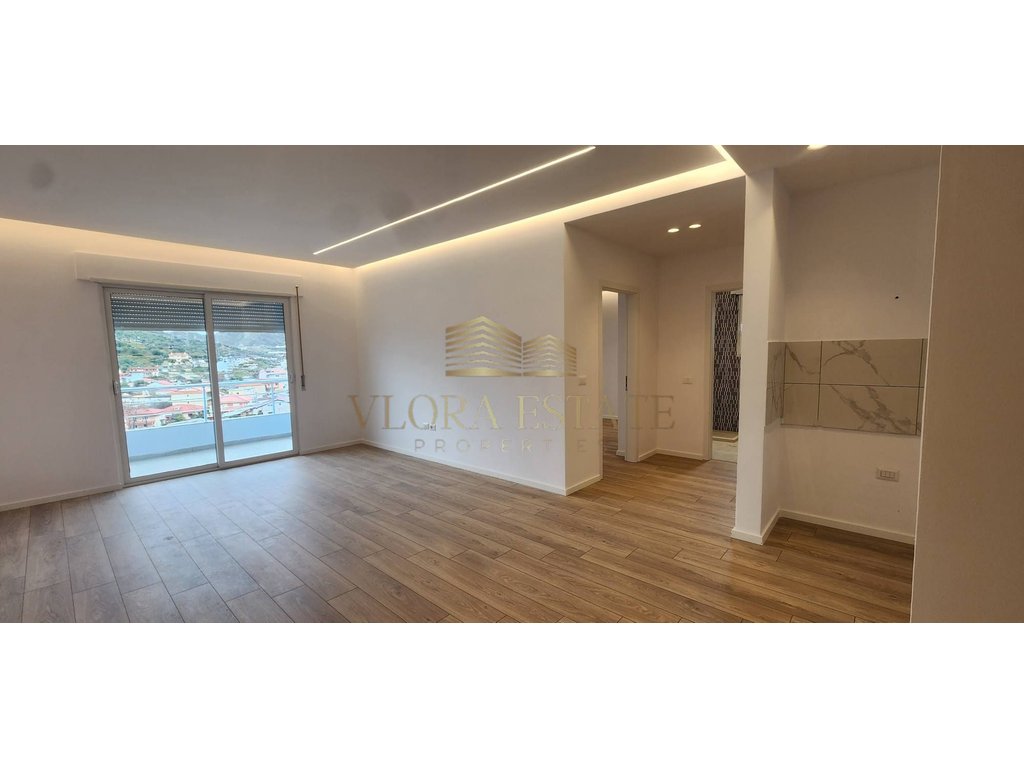 Apartament 2+1 , ndodhet në katin e 6-të të një ndërtese me 11 kate, në zonën qendrore të Vlorës dhe ofron pamje nga mali.